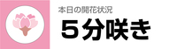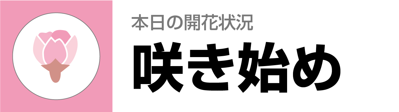 - 本日より桜の開花状況をアップいたします。開花状況に応じて更新してまいりますので、ご来場の目安にしていただければ幸いです。